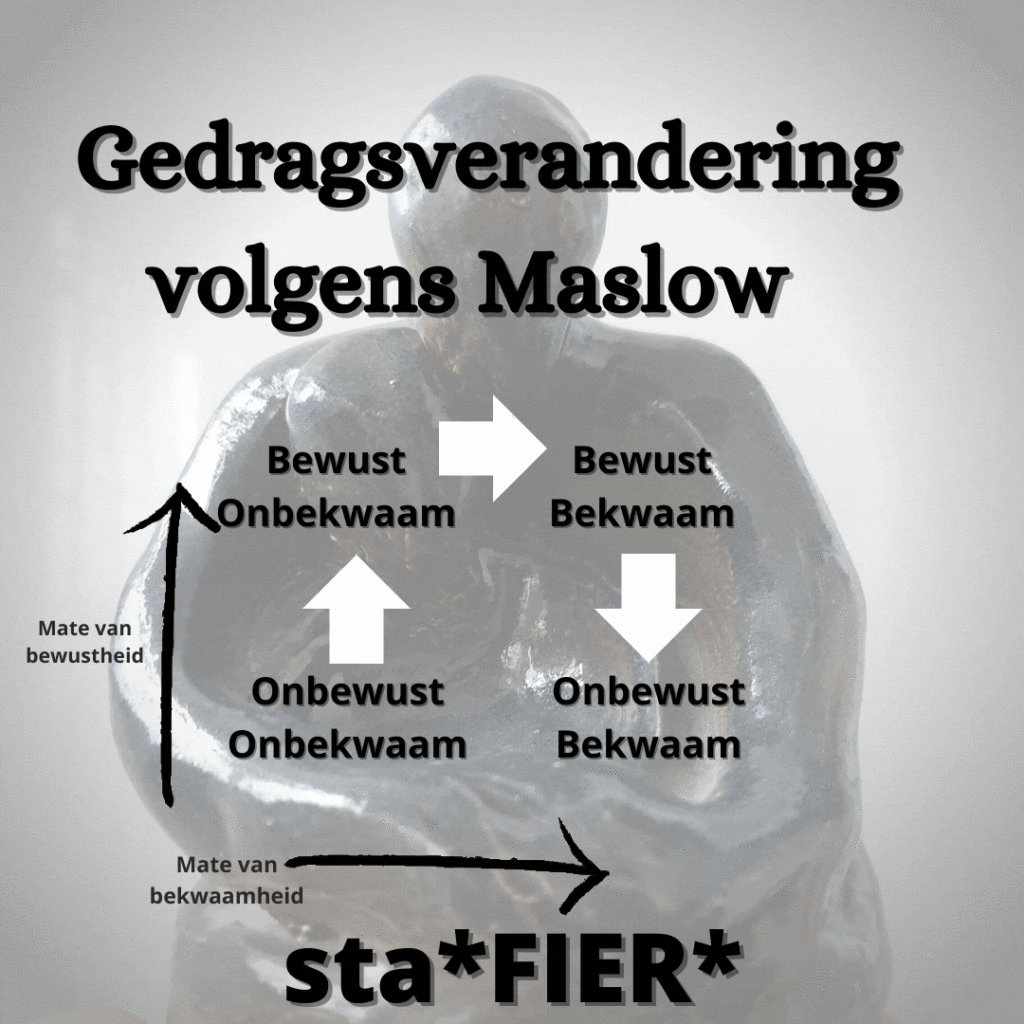 Je moet je namelijk eerst bewust zijn van hetgeen je wilt veranderen. Dan pas ben je bewust onbekwaam. Je weet wat je wilt, maar je kan het nog niet. Daarna ga je oefenen en wordt je
