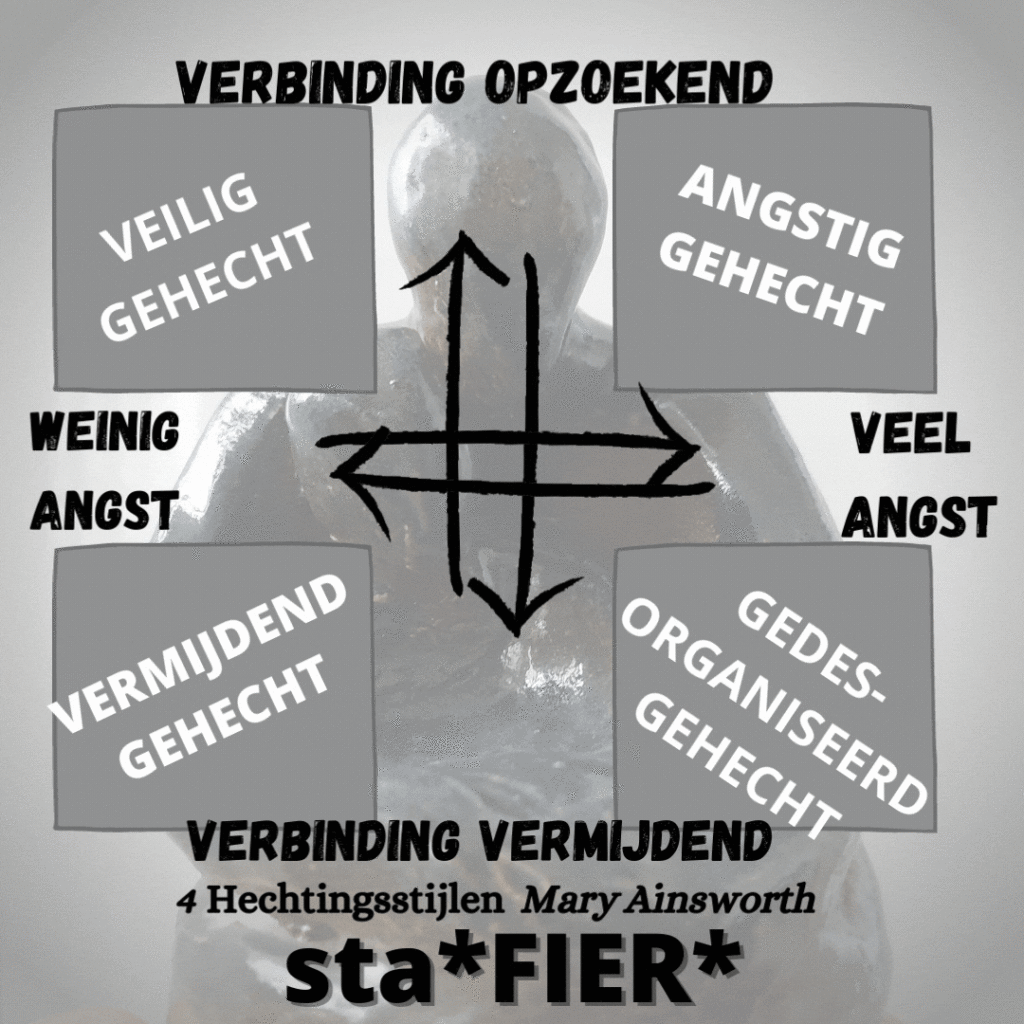 Allemaal hebben we een eigen hechtingsstijl. Of een combinatie van verschillende stijlen. Het gaat te ver om hier een uitgebreide uitleg te geven van de kenmerken van de verschillende stijlen. Hier is veel informatie over te vinden.