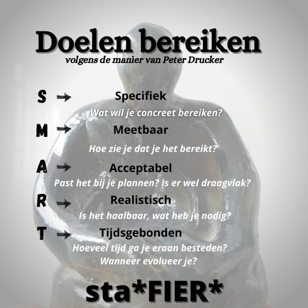 Door je doelen en voornemens S.M.A.R.T. te formuleren, maak jij het voor jezelf weer een stukje duidelijker & concreter wat je wanneer en waarom gaat doen.